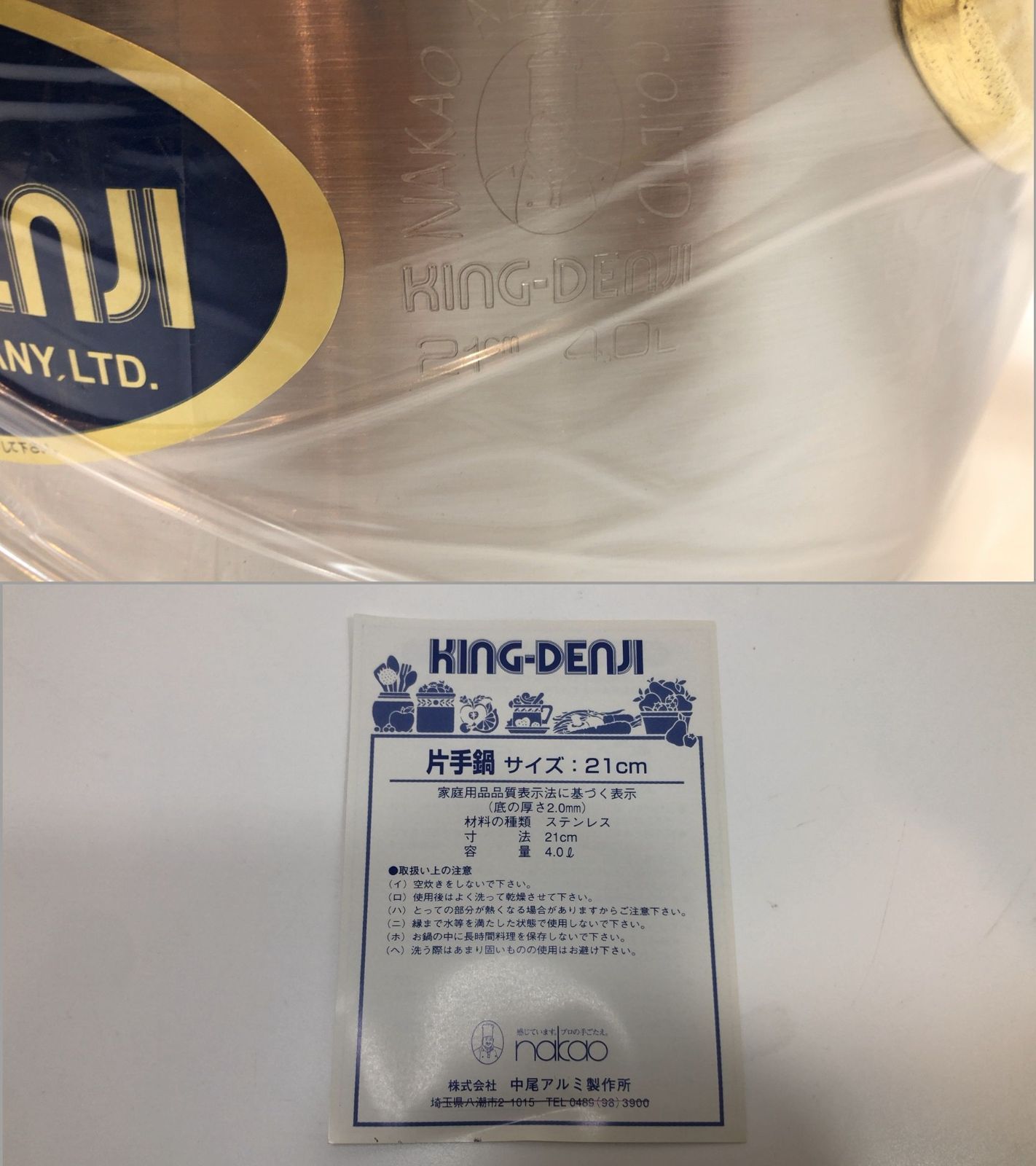 KING DENJI 21 cm 片手鍋 容量 4 0 L IH対応 目盛付 nakao キングデンジ