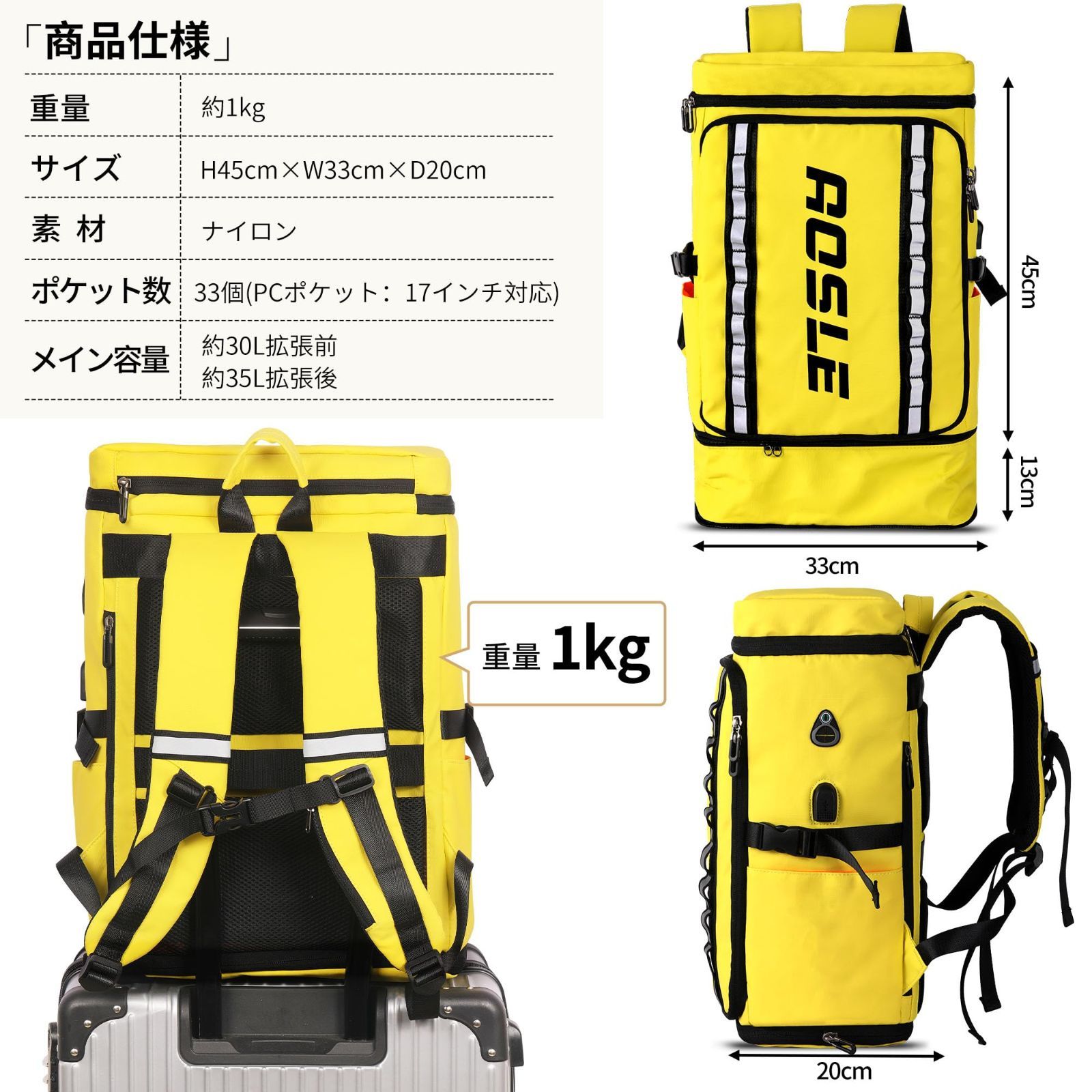 [AOSLE] リュック メンズ リュック 大容量 底部拡張30-35L 15.6インチPC 反射ストリップ付き USB充電ポート付き 旅行 修学 防災 防水 登山 通勤 多機能 通気性 A4収納 靴/弁当収納