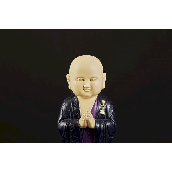 ★お経を唱える可愛いお坊さん*いつでもどこでも心行くまで共に読経をしてくれるお坊さん人形です。 土台から般若心経が流れるので朝夕のおつとめや読経の練習にも最適です。 電源スイッチとボリュームダイヤルだけの操作でだれでも簡単に使用できます。 一人で拝むよりもお坊さんと一緒に拝むことで日々のおつとめがより積極的になります。*お坊さんの手は数珠掛けになっております。 穏やかな表情で飾っておくだけで癒されます。*組み立て不要<材質>
