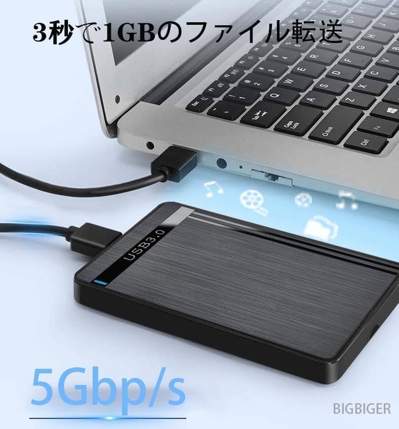 BIGBIGER 外付けHDD 1TB USB3.0 Type C HDD 2in1外付け ハードディスク 2.5インチ機械式ハードドライブ 超薄型 ポータブルHDD ノートパソコン/PC/TV/Mac/PS4/XBox適用に対応 テレビ録画 (黒) (HDD TB)