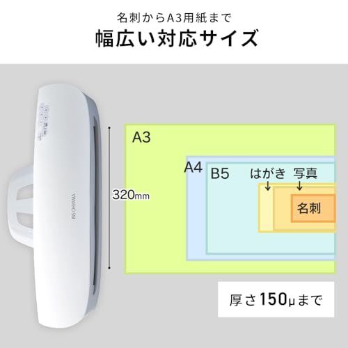 【コードの長さ】:約1.5m 【対応サイズ】:A3(厚さ150μまで)