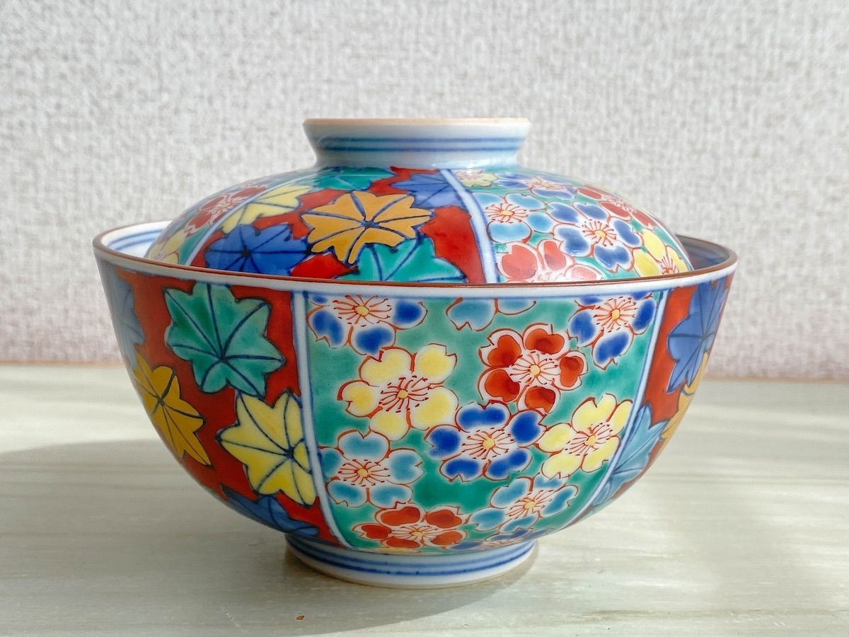 TK 130 京焼 平安雲泉 作 彩色雲錦 蓋向付 小鉢5客揃 直径約12 5 cm 共箱 陶磁器 和食器 茶道具 伝統工芸