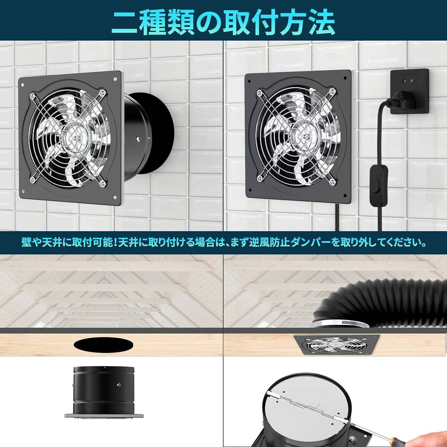 【強力なモーター&手入れ簡単】換気扇は強力な誘導モーターを採用され、通常のモーターと比べて、アップグレードされたモーターは摩擦係数を減らし、電力を効果的に節約し、もっと効率的に換気する。また、換気扇の四隅のネジをゆるめば防護網、内部の羽根、モーターなどを分解しやすい。ほこりや油汚れを定期的お手入れ可能です。換気効果や製品耐用年数の延長に役に立つ。
