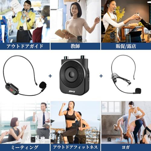 【コンパクト・軽量】 スピーカーセットには調整可能なベルトとフックが付属しています。5通りの装着方法:肩に掛ける/首に掛ける/腰に巻く/ズボンに掛ける/身体に装着しない(ワイヤレスマイクの場合)。手のひらサイズの小型スピーカーで軽量なので、長時間装着しても負担になりません。有線マイクとワイヤレスマイクが付属し、マイク部分はフレキシブルアームで自由に動かせます。