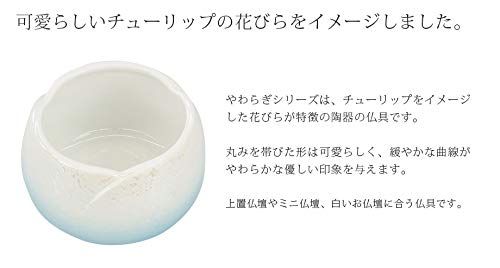 チューリップをイメージした花びらが特徴の陶器の仏具です。 丸みを帯びた形は可愛らしく、緩やかな曲線がやわらかな優しい印象を与えます。 上置仏壇やミニ仏壇、白いお仏壇に合う仏具です。
