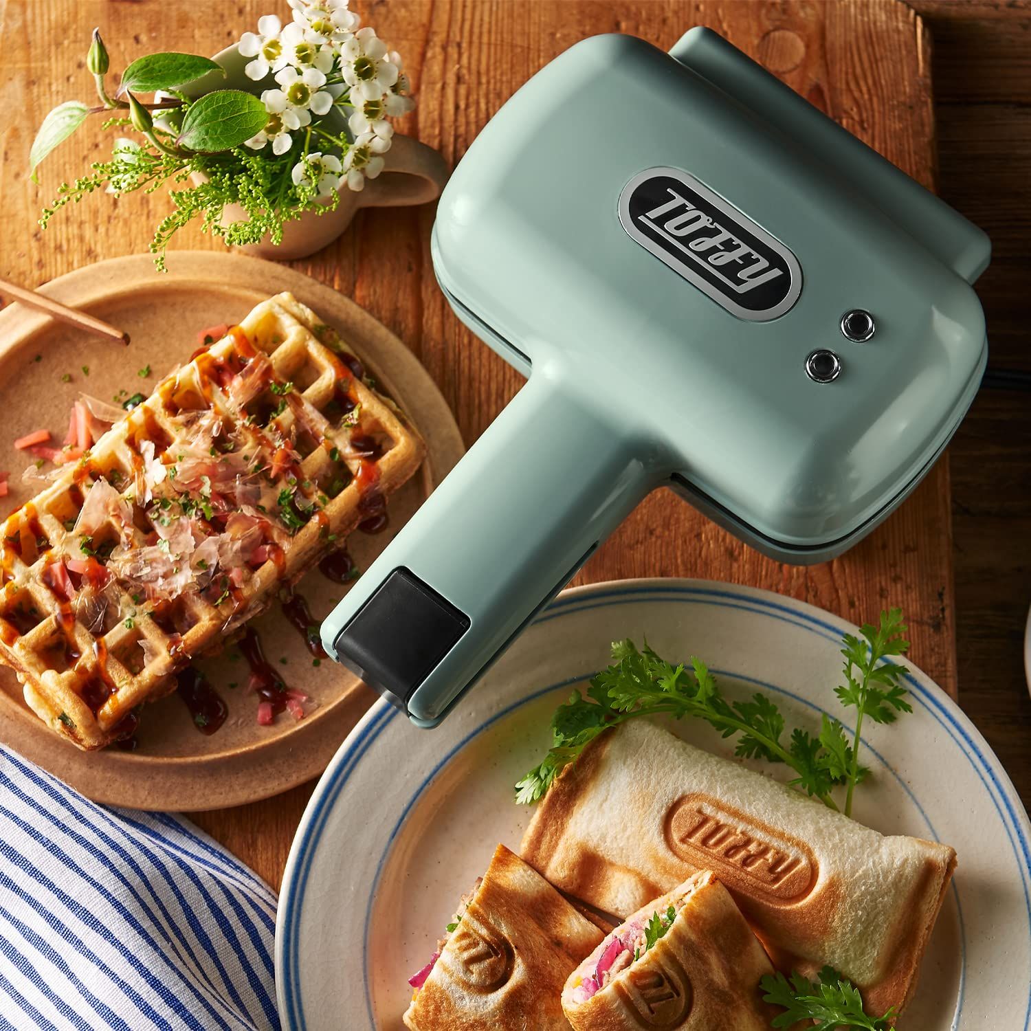 Toffy トフィー ハーフホットサンドメーカー プレート交換式 K HS 5 ペールアクア ハーフホットサンド ワッフルプレート 2 WAY 食べきりサイズ プレート水洗い スイッチON OFF PA
