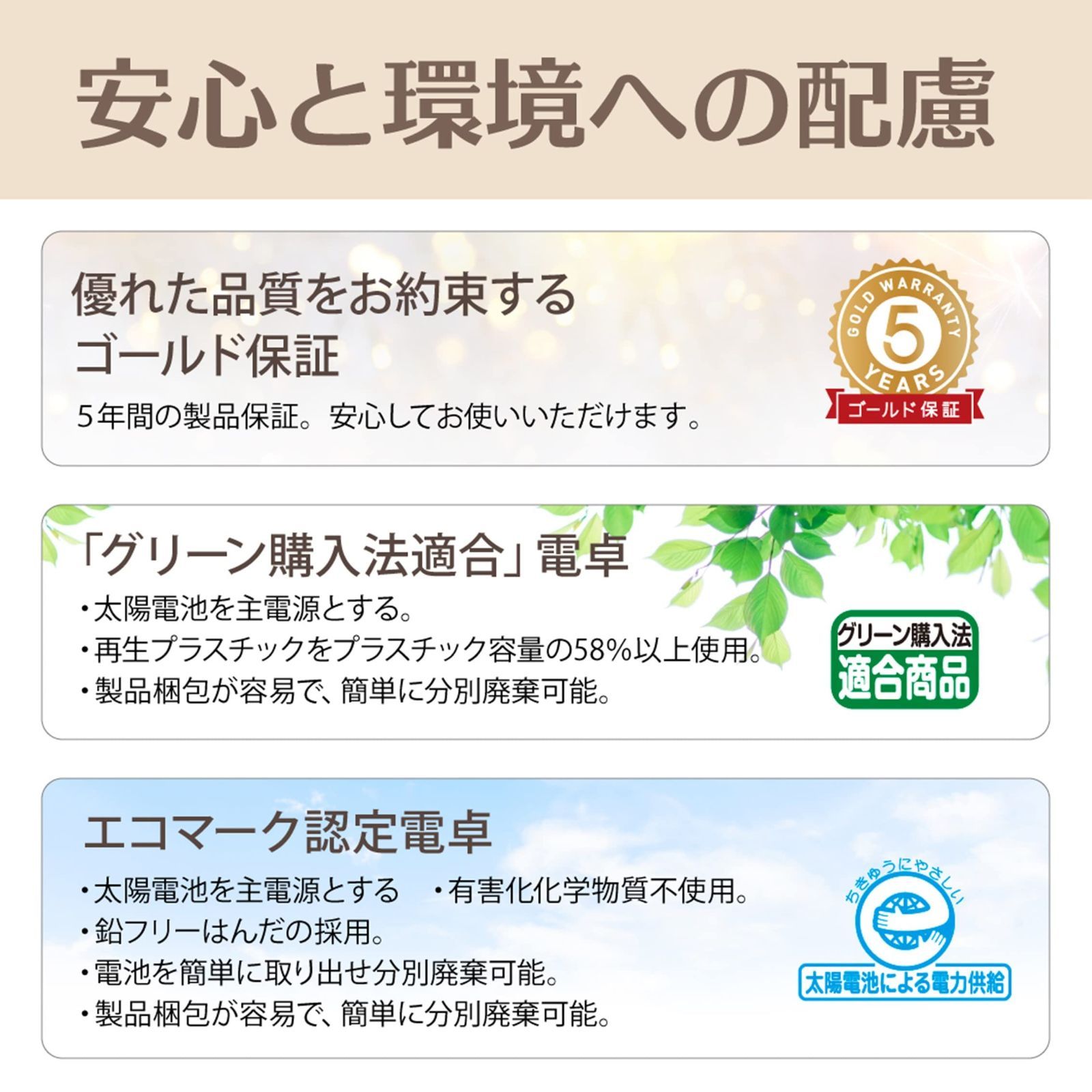 ソーラーと内蔵電池のツーウェイ・パワー方式(CR2032×1 内蔵)