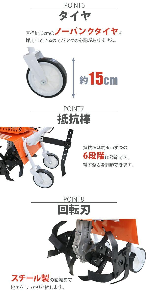 スチール製の回転刃で地面をしっかりと耕します。