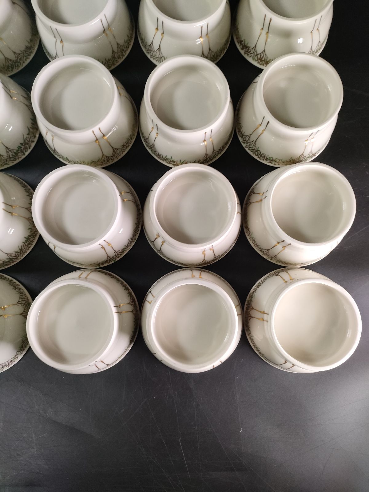 F 5 01 京焼 色絵錦若笹文高台小鉢24客 料亭 向付 小鉢 銘々皿 割烹 和食 飾物 置物 懐石