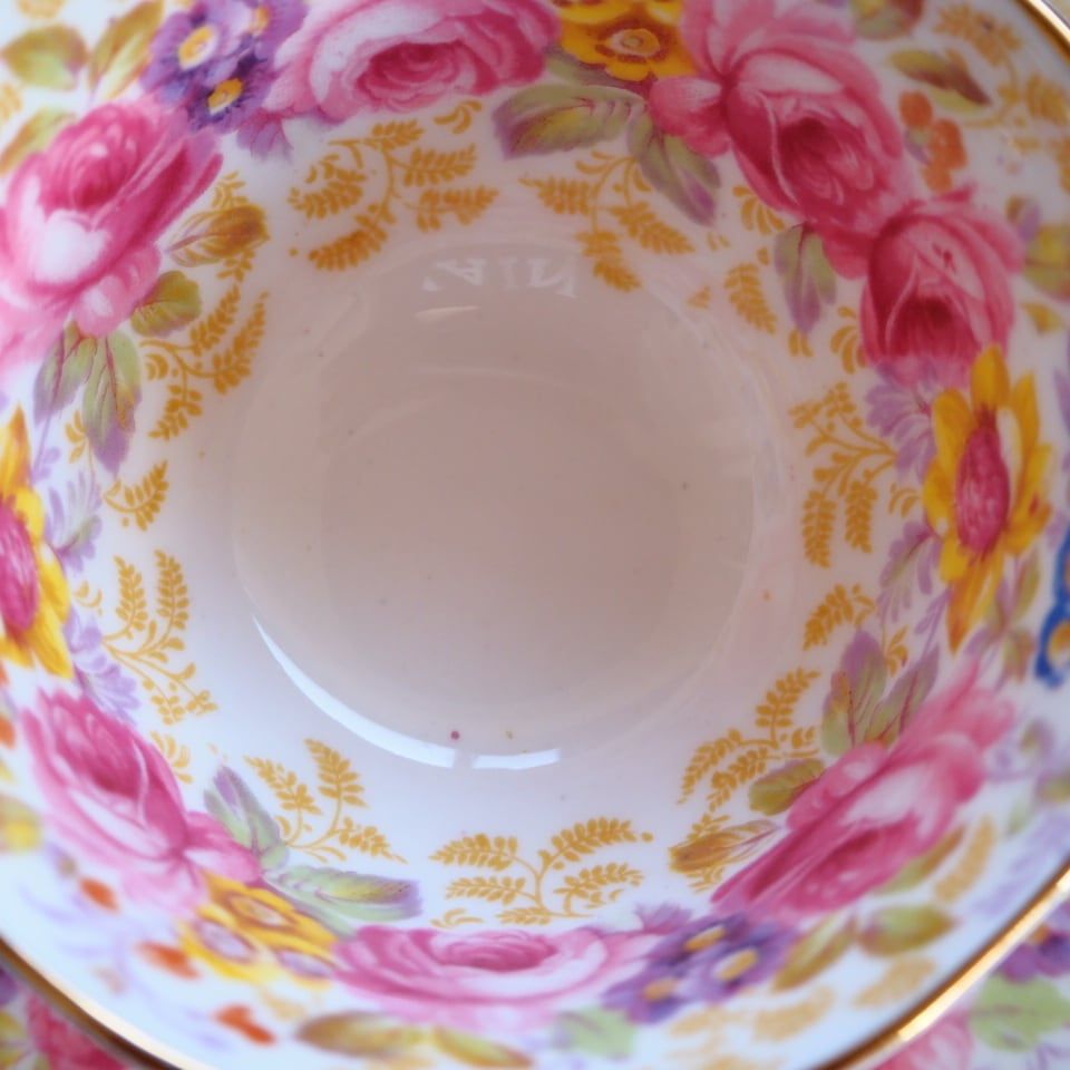こちらのお品は、カップの内側にもお花がぐるっと一周描かれているパターンでセレナの中でも高級ラインのお品です。