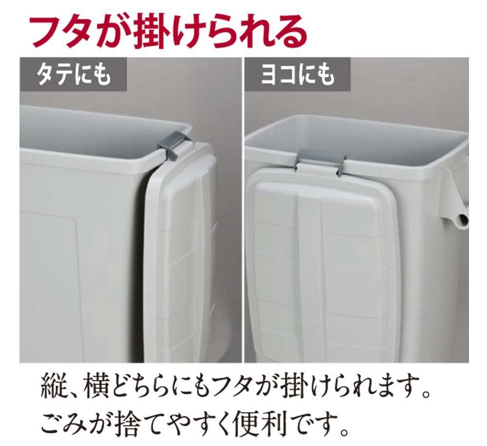 フタは側面に縦・横に引っ掛けることができるのでゴミが捨てやすい