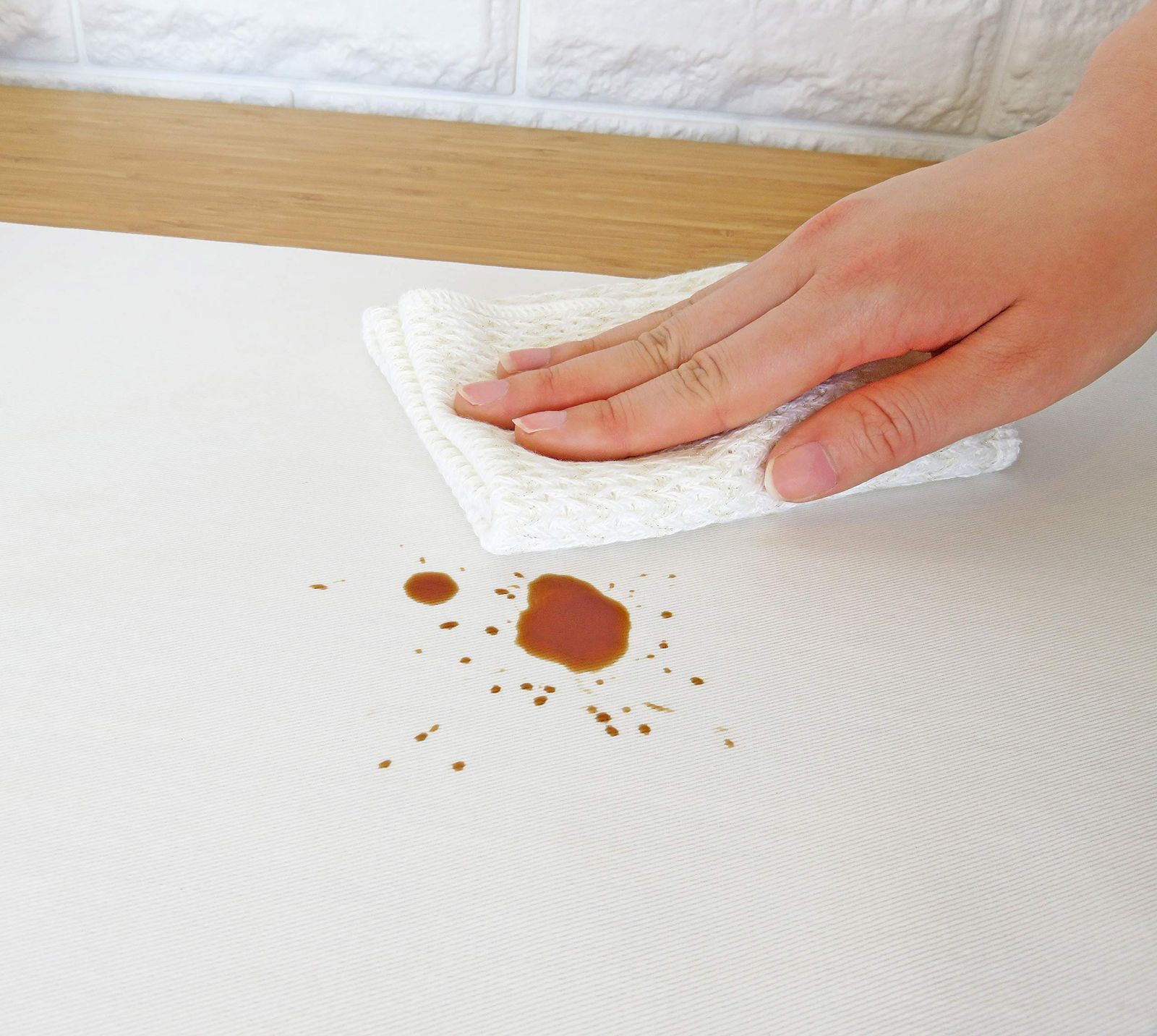 ●布の表面にフィルムを貼り合せていますので、汚れてもサッと拭いて衛生的にお使い頂けます。