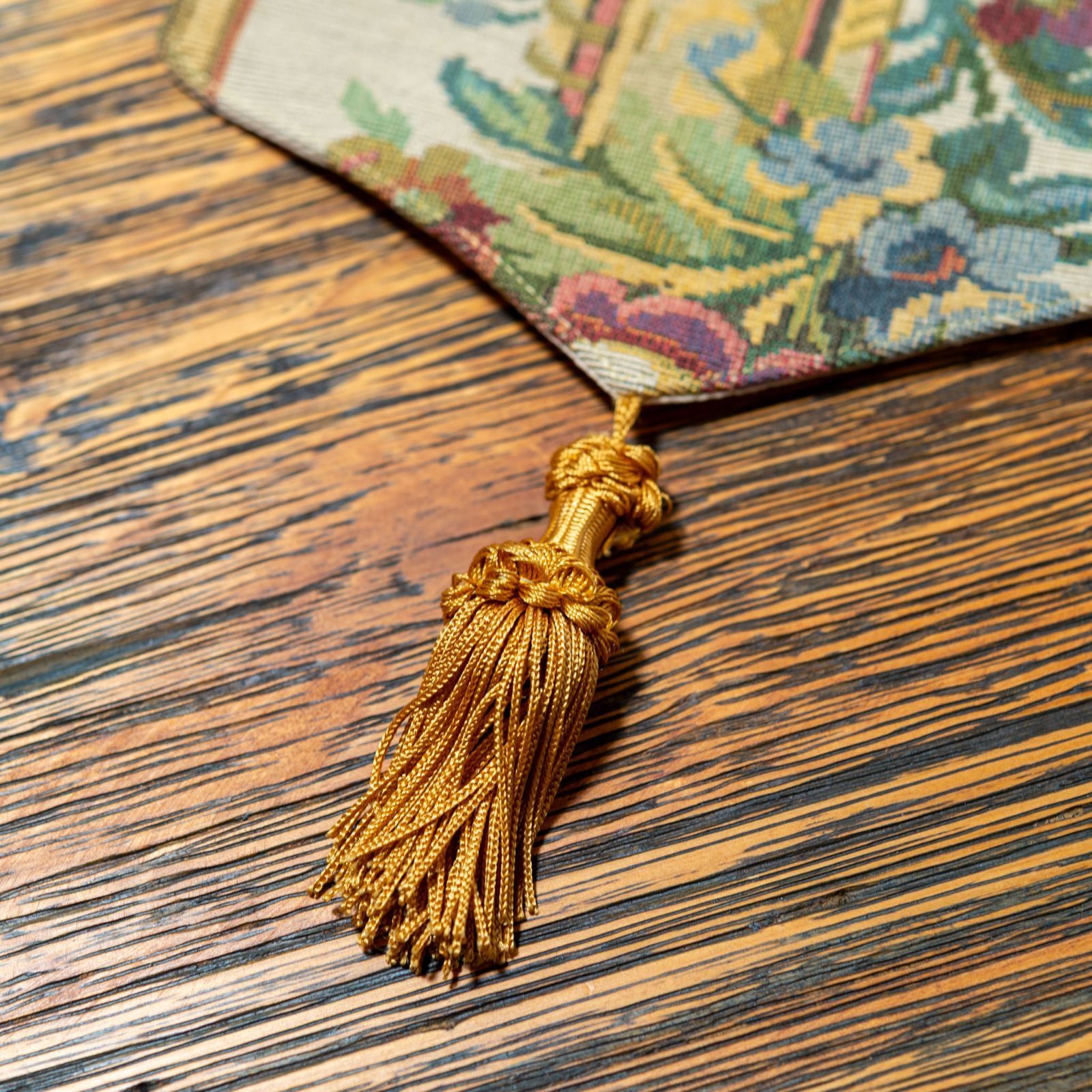 イタリア製 ゴブラン織り タッセル付きテーブルランナー 幅18 5 長さ142 cm
