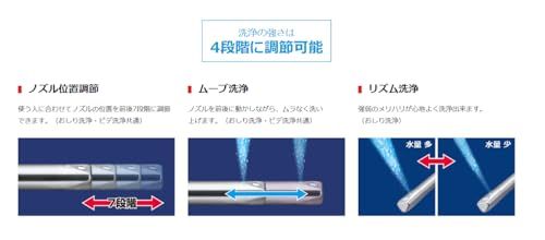 毎日気持ちよく使える!清潔がうれしい気配り仕様。ステンレスノズル。ノズル洗浄。抗菌便座。