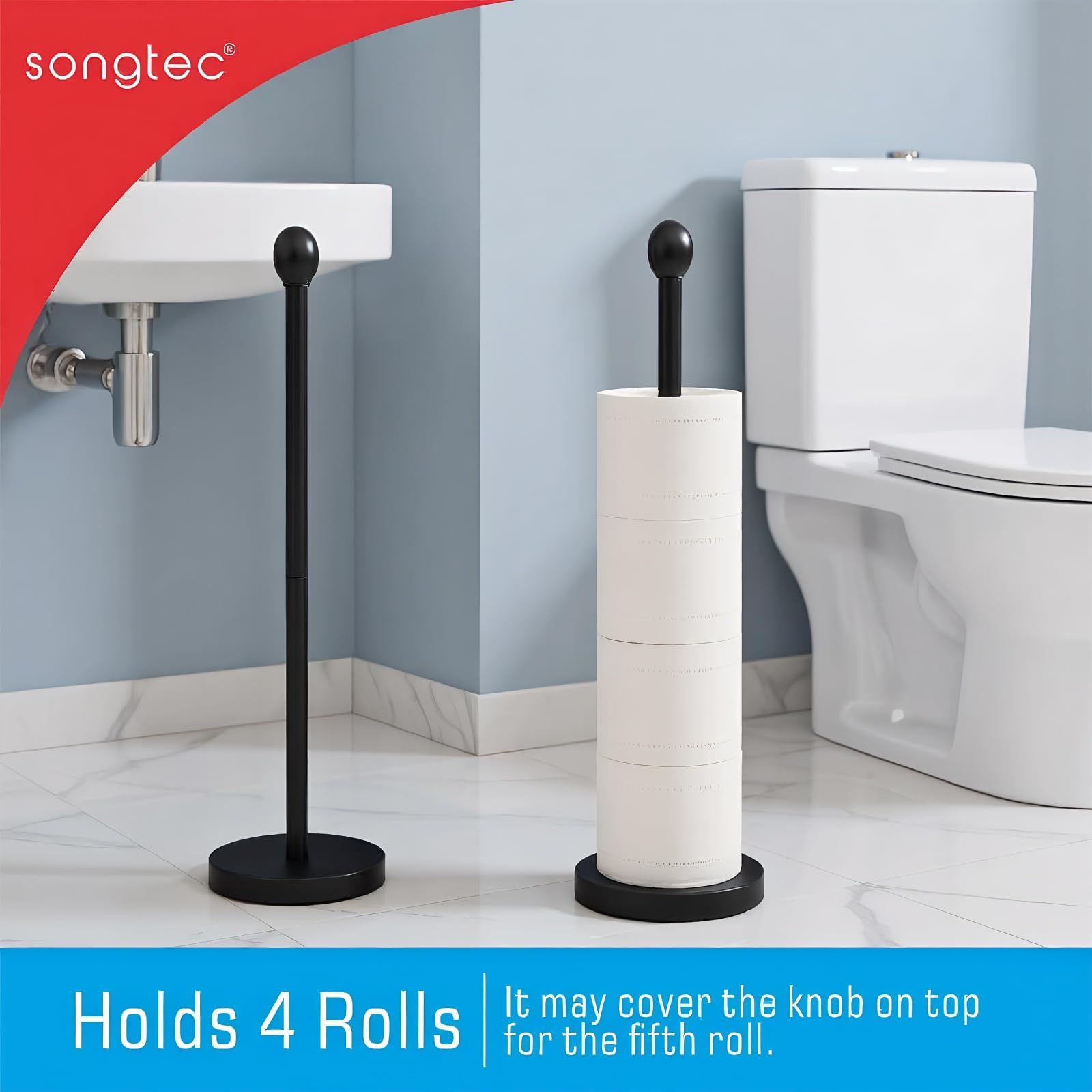 Songtec トイレットペーパーホルダースタンド 予備付き コンパクトデザイン ティスロールホルダー 4ロール用 バスルームトイレットペーパー収納 -