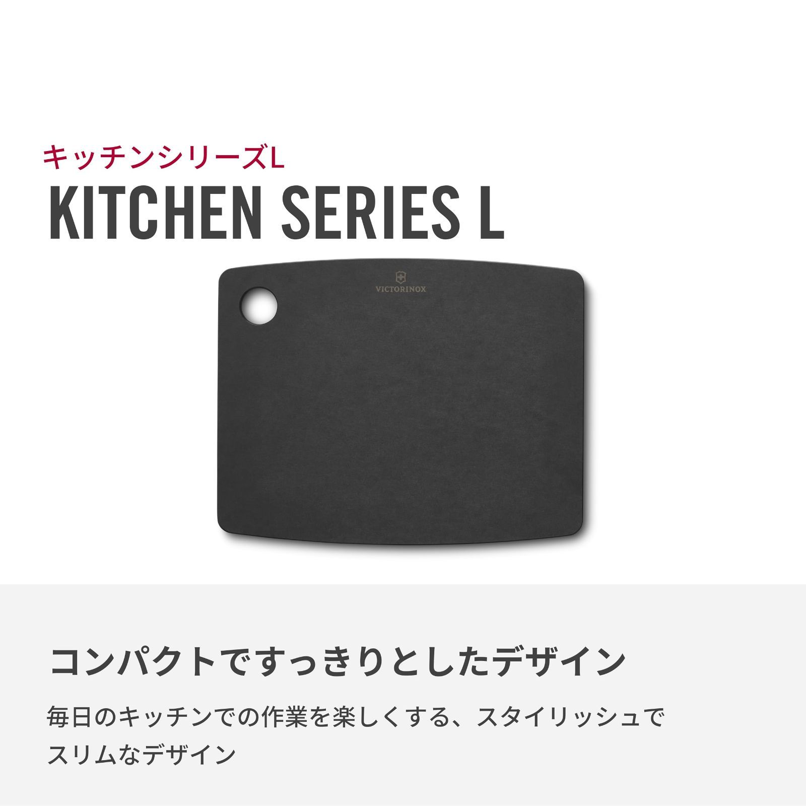 カッティングボードの素材、セルロース繊維加工品は、木工品のような暖かみと素晴らしい外観ながら、 軽くて薄く、食器洗い乾燥機に対応します。さらにプラスチックや通常の木製ボードと比較して非常に丈夫で、深い切り傷を最小限に抑えることができ、また木製ボードのように乾燥でひび割れることもありません。ビクトリノックスのカッティングボードは、非常に衛生的で、清潔に保ちやすく、プラスティックボードのようにマイクロプラスチックが食べ物に混入するリスクも回避できます。この素材は食品に使っても安全な樹脂を上質なクラフト紙に浸し、紙の向きを交互に変えながら重ね均等な熱と圧力でプレスすることで、紙の層を結合させ、しっかりとした安定したシート状の素材に仕上げています。