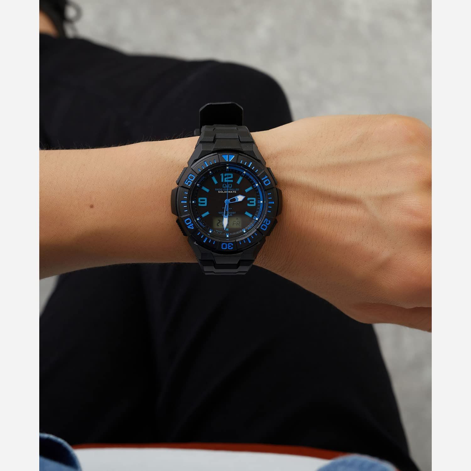 [シチズン Q&Q] 腕時計 アナログ 電波 ソーラー 防水 日付 ウレタンベルト MD06-335 メンズ ブラック × ブルー