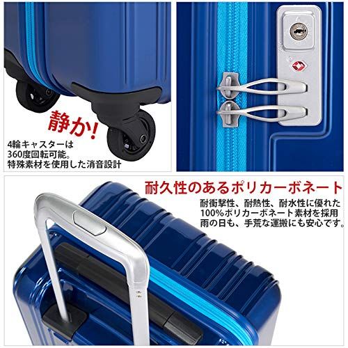 ?【とても静かなハードスーツケース!】 4輪のキャスターは、360度回転可能です。 特殊素材を使用した静音設計で、使い心地がいいです。 ?【一般的なウレタンのキャスターの音より、約2/3の音の大きさで静か】 一般的なウレタンのキャスターは、平均65.8dB 一般的な少音のキャスターは、平均51.3dB SiiiN+のキャスターは、平均44dBです。