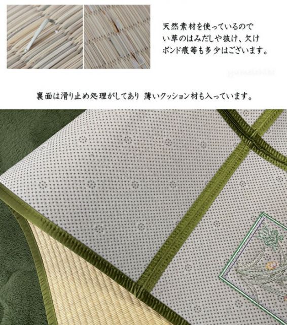 韓国では冠婚葬祭の場面でよく目にするい草のカーペット。韓国の高潔な四君子・梅蘭菊竹の刺繍を入れたとても重宝なカーペットです。