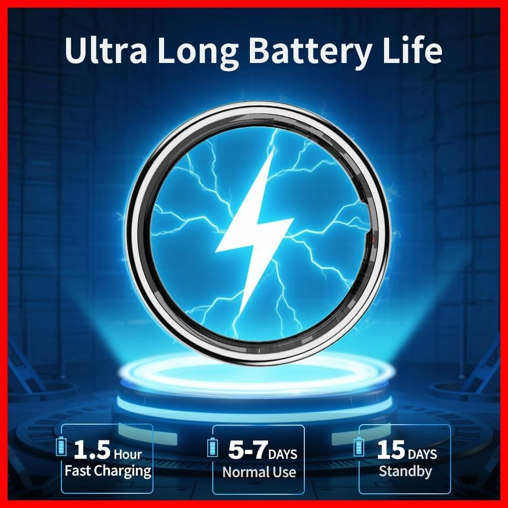 【ワイヤレス急速充電リング | 無限のパワー】1.5時間の充電で5~7日間のアクティブ使用(スタンバイ時は15日間)が可能です。効率的なワイヤレス充電により、置くだけで充電完了。ケーブルを気にすることなく、手間なく充電できます。最適化された低消費電力設計により、一日中安定した継続的なトラッキングを実現します。