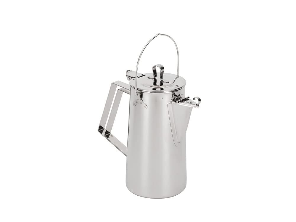 焚火や炭火の高カロリーな熱にも対応する縦長のクラシックなフォルムのケトルです。上部に吊り下げ用のハンドルも備えキャンプシーンに対応いたします。