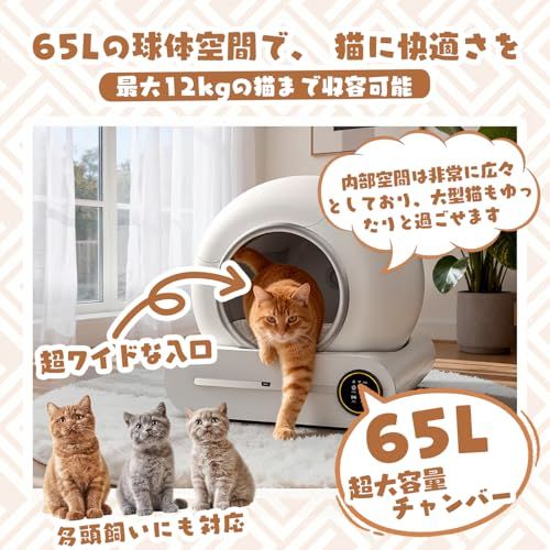 猫 自動トイレ 猫トイレ静音 自動猫トイレ 65 L超ワイド空間 最大12 kg対応 9 L大容量 15日間ゴミ捨て不要 Wi Fi接続 タイマー設定 4重安全センサー 健康管理 体重 排泄記録 15 cm低入口設計 子猫も安心 丸洗い可 多 dd 5 b 19 e 2