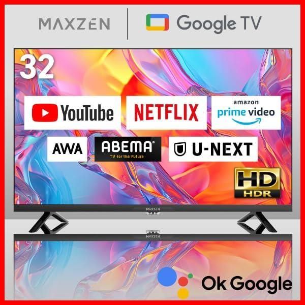 32インチ グーグルテレビ 32 V 地上 BS 110度CSデジタル Googleテレビ 外付けHDD録画機能 HDMI 2系統 HDRパネル 32型 Youtube Netflix PrimeVideo テレビ Abema U NEXT 視聴
