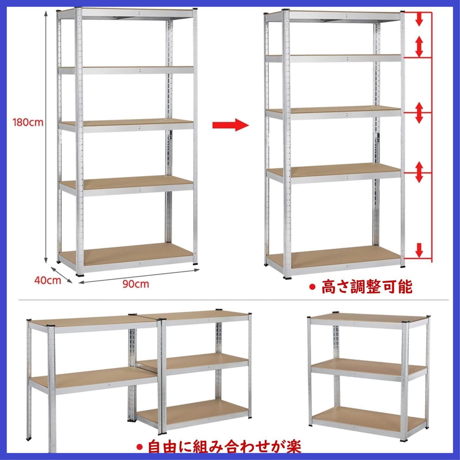 Yaheetech キッチンラック スチールラック本体 幅90 オープンシェルフ メタルラック 5段 収納棚 高さ調節可 ステンレスラック 収納ラック 防サビ加工 ネジなし 組立簡単 90 40 180 cm 耐荷重875 kg キッチン 物置 倉庫 ガレージ S