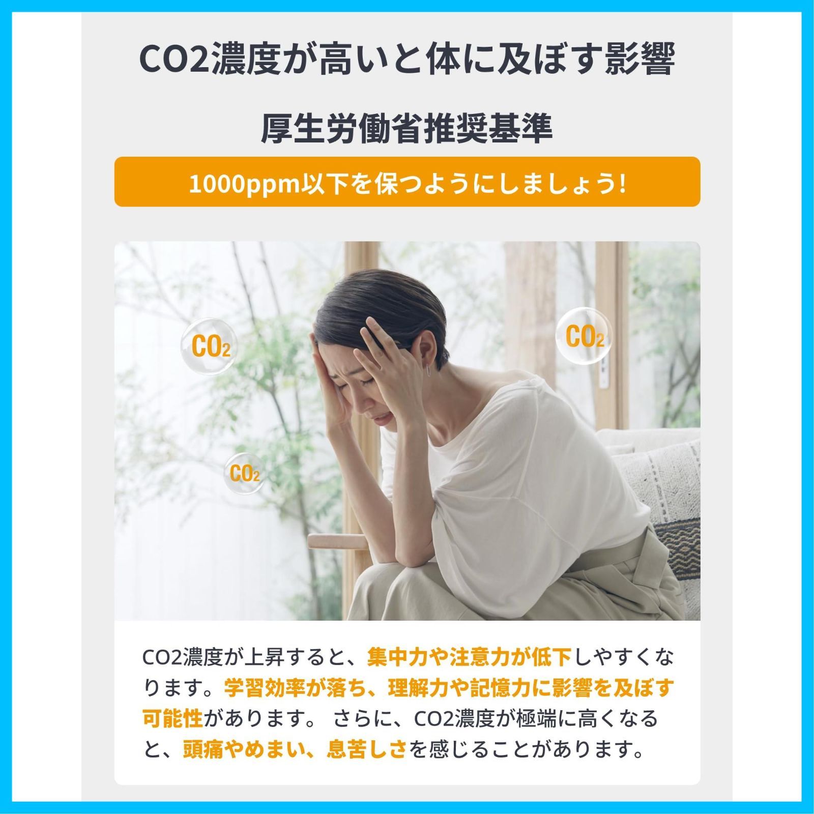 【NDIR方式CO2センサーとスイス製の温湿度センサー搭載】厚生労働省の推奨するNDIR方式のCO2センサーを採用し、高精度な空気質のデータを提供。厚生労働省では、室内の良好な換気状態を維持するためには、二酸化炭素濃度が1,000ppm以下であることを推奨しています。さらに、信頼性の高い高精度な温湿度センサーを搭載し、常に最新の正確なデータを提供します。