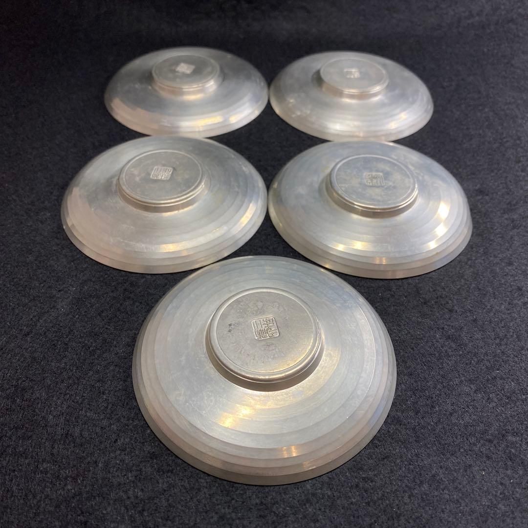 三代泰蔵六 錫茶托5点 共箱 410 g 9 7㎝ 東Y 6 1219 2 Fトヒサル