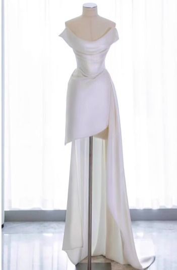 オフショルダー ウェディングドレス ミニ丈 ドレープ 韓国