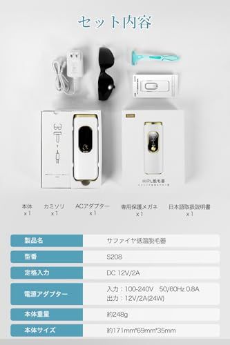 【誰でも簡単に使える!】 日本語取扱説明書には詳しい使用方法を掲載しており、初めての方でもすぐに使いこなせます。セット内容:「脱毛器*1、電源アダプター*1、カミソリ*1、専用サングラス*1、日本語取説*1」。スタイリッシュなデザインで、自分用はもちろん、大切な人へのギフトにも最適。家族や恋人、友人への贈り物としてもおすすめです。