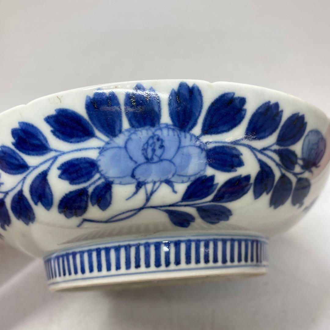江戸中後期 掲載品 鍋島焼染付輪花 櫛目高台中皿 トコト 本さ5 0709