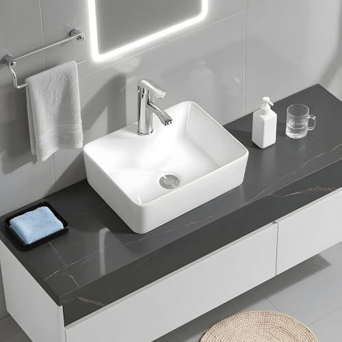 迅速に発送 洗面ボウル 手洗い器 洗面台 手洗器セット 手洗い場 置き型 長角型 深型 デザイン 排水管付き 冷温水対応 コンパクト 省スペース 40x30x13 cm ホワイト ec 729 f 0 b