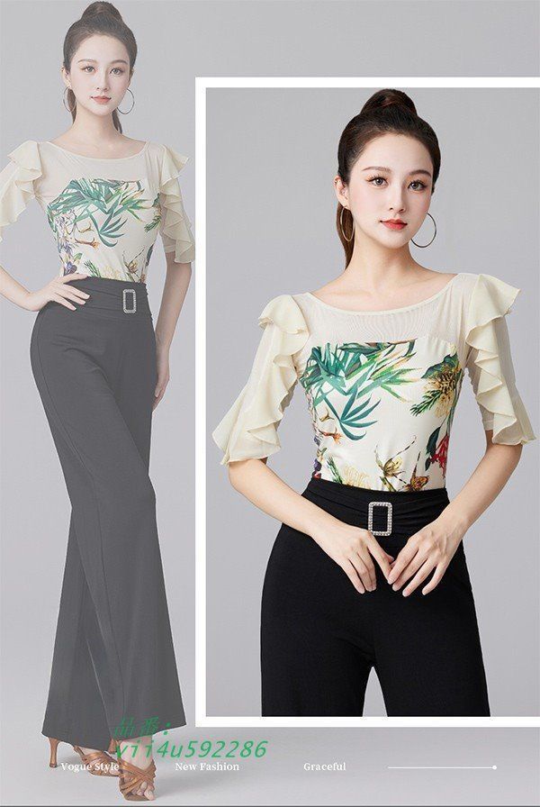社交ダンス トップス 社交ダンス衣装 上着 大きいサイズ 花柄 社交ダンス フリル ダンスTシャツ 透け感 ラテンダンス ダンス用シャツ xzdsrpc