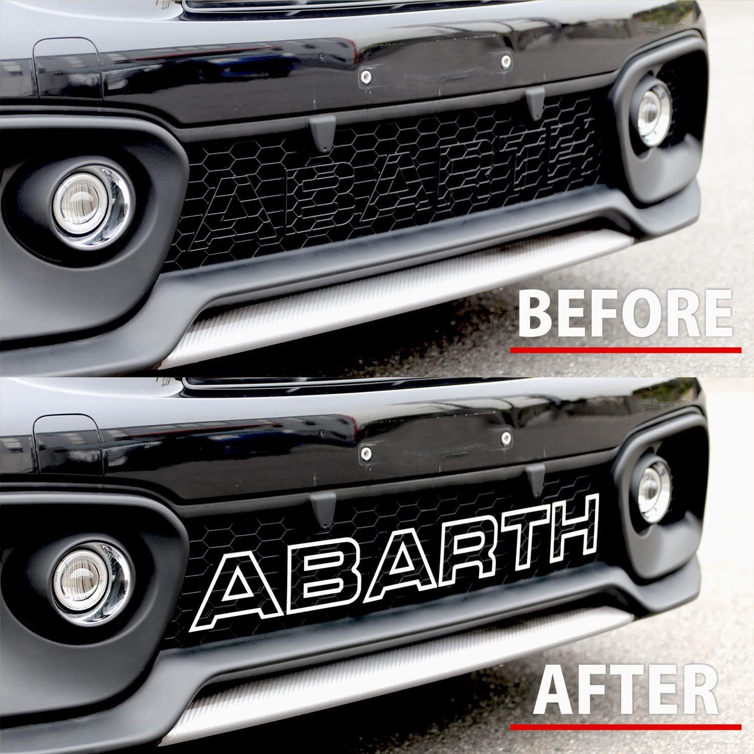 ■イブデザイン アバルト 695・595 シリーズ4以降 専用 フロントグリルデコレーションキット 「ロゴインパクト2」 ■商品裏面の両面テープと結束バンドで固定するだけの簡単取り付け! ■フロントグリルの「ABARTH」文字を強調し、ロゴの視認性UP! ■本製品はABARTHの純正品ではありません。 ※「ホワイト/メッシュ」「ホワイト/グラデーション」「グレー/メッシュ」「グレー/グラデーション」「レッド/メッシュ」「レッド/グラデーション」「イエロー/メッシュ」「イエロー/グラデーション」「ピンク/グラデーション」「トリコローレ/メッシュ」「トリコローレ/ライン」「トリコローレ/ヨコ」「フェイクカーボン」「フェイクウッド」「マーブル」「シルバーメタリック」「ゴールド」は取付ける際に「結束バンド又は補助クリップ」で塗装面の一部が隠れます。予めご了承ください。