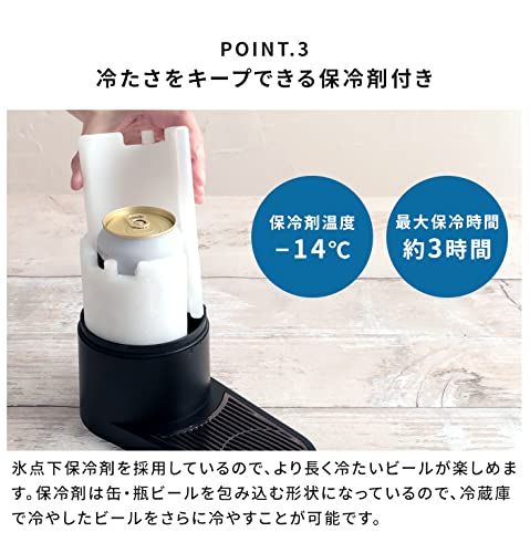 ・ビアホールのビールサーバーと同じ操作感 ・キンキンを味わえる!氷点下保冷剤を付属 ・各社の缶ビール、瓶ビールに対応した全体加圧方式を採用