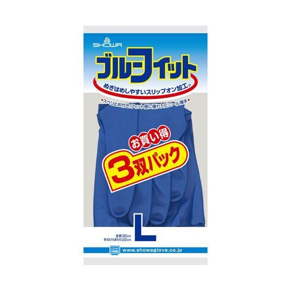 〔まとめ〕 ショーワグローブ ブルーフィット 3双パック Lサイズ 〔 〕 使い捨て手袋 使いきり手袋