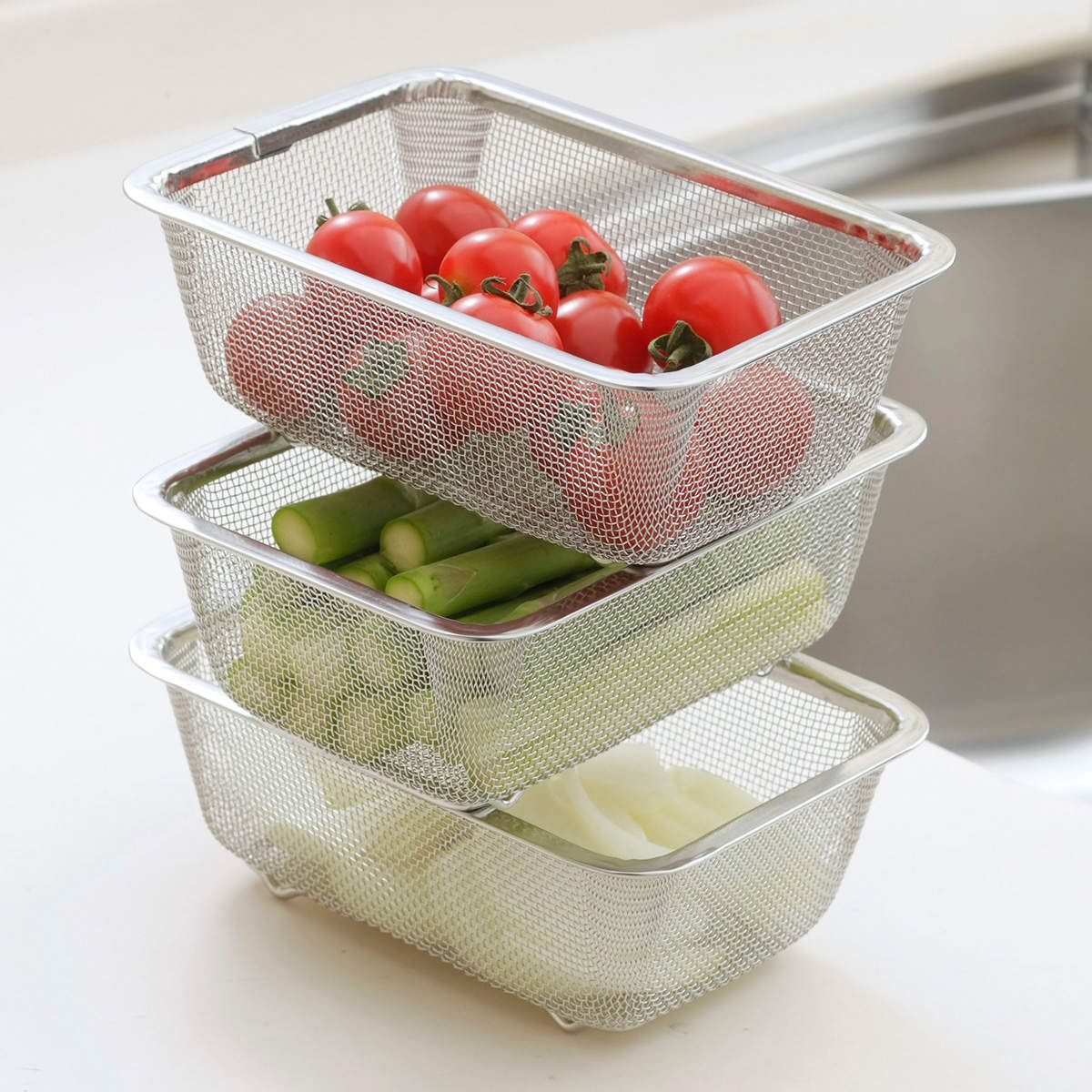 ●ザル×3個、バット×3個、シリコン蓋×3個のセットです。