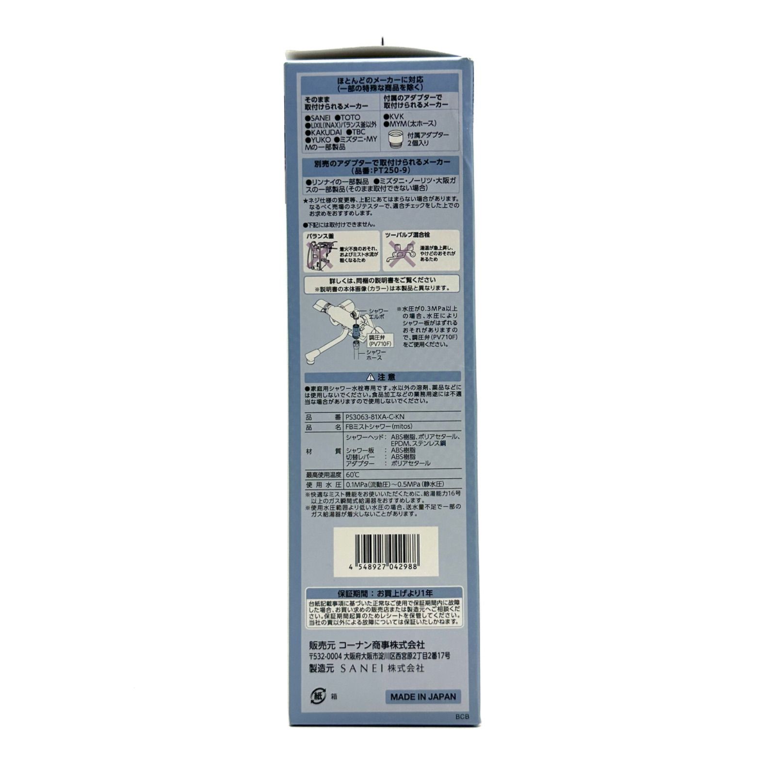 元住吉 LIFELEX SANEI サンエイ FBミストシャワー mitos PS 3063 81 XA C KN シャワーヘッド ウルトラファインバブル