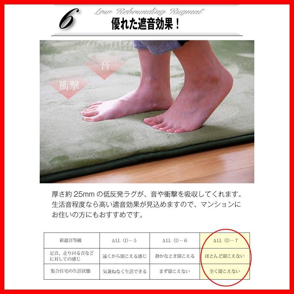 数量 厚手 ラグマット 抗菌 防ダニ加工 カーペット 200 250 cm オールシーズン 厚25 mm 滑り止め付 低反発ラグ マイクロファイバー ラグ サイズ フリーリー L無地 グリーン