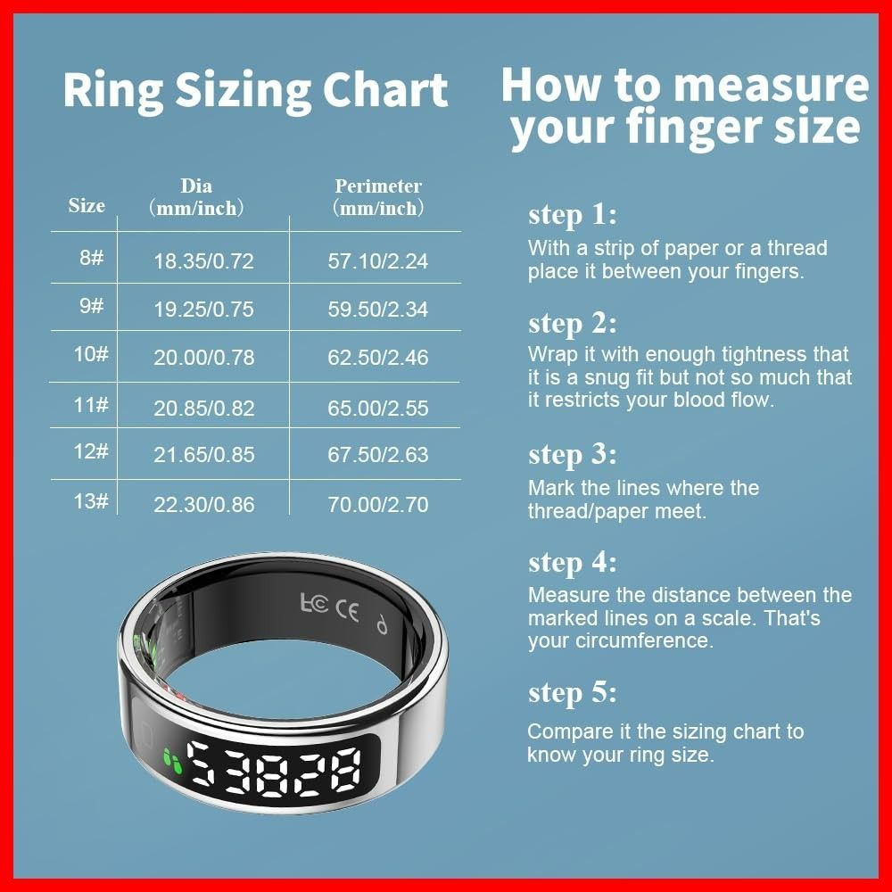スマートリング | 睡眠トラッキング | フィットネスリング | スマートディスプレイ | ワイヤレス充電 | 5~7日間のバッテリー寿命 | 5気圧防水 | Android 5.1 & iOS 8.0対応 | ユニセックス (シルバー, 12)