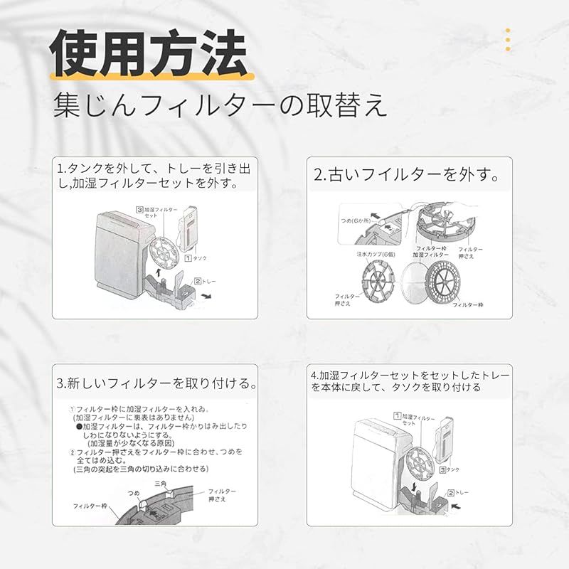 【交換目安】約10年。交換時期は、使いかたや設置場所により異なる。加湿フィルターの汚れが落ちないときや、加湿量(水の減りかた)が少なくなったと感じたときは交換してください。