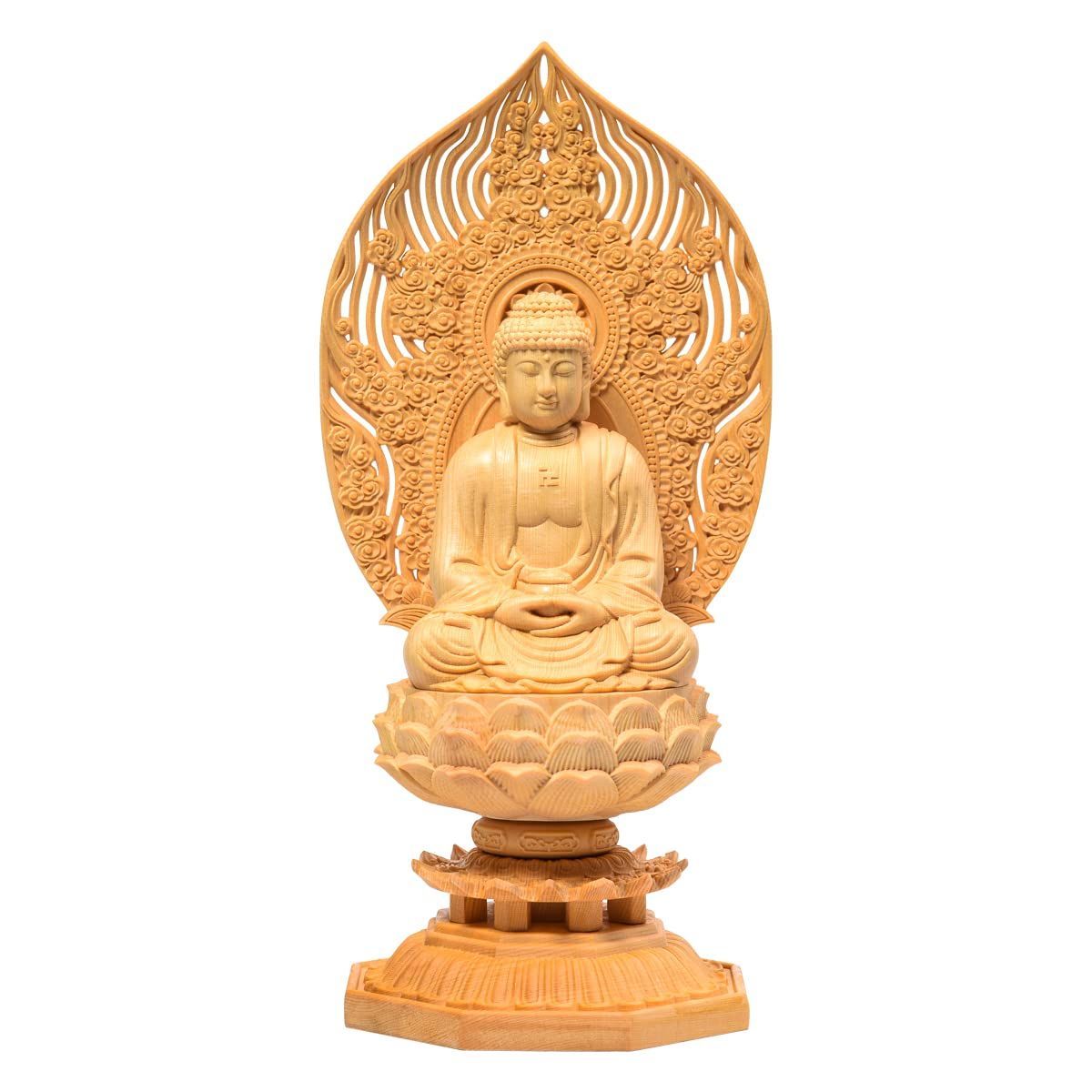 Color:釈迦如来 繁樓藝雕 仏像 釈迦如来 曹洞宗 臨済宗 仏壇仏像 木彫り 桧木製 祈る 厄除け 祥雲光背 八角台座 (高さ28cm×巾12cm×奥行12cm)