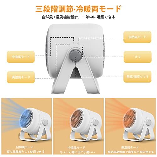 【3段階温度調整&省エネ】電気ヒーターは「高温風1000W」、「中温風800W」、「送風モード3W」の温度モードが搭載されます、省エネでも暖かいミニヒーター!電源ボタンを押すと3秒すぐ暖かさを感じられます。卓上や足元にもスッキリ置けるミニセラミックファンヒーター。空気を汚さず、素早く暖を取れるので、キッチンや仕事スペースの足元などにスポット暖房として、洗面所でもおすすめ!