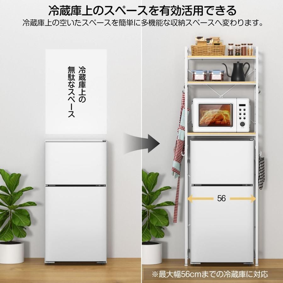 冷蔵庫上ラック ゴミ箱上ラック 洗濯機ラック W 60 D 40 H 180 cm 11段調整 ワイヤーネット収納 レンジ台 レンジラック 食器棚 大型電子レンジ対応 フック 付き