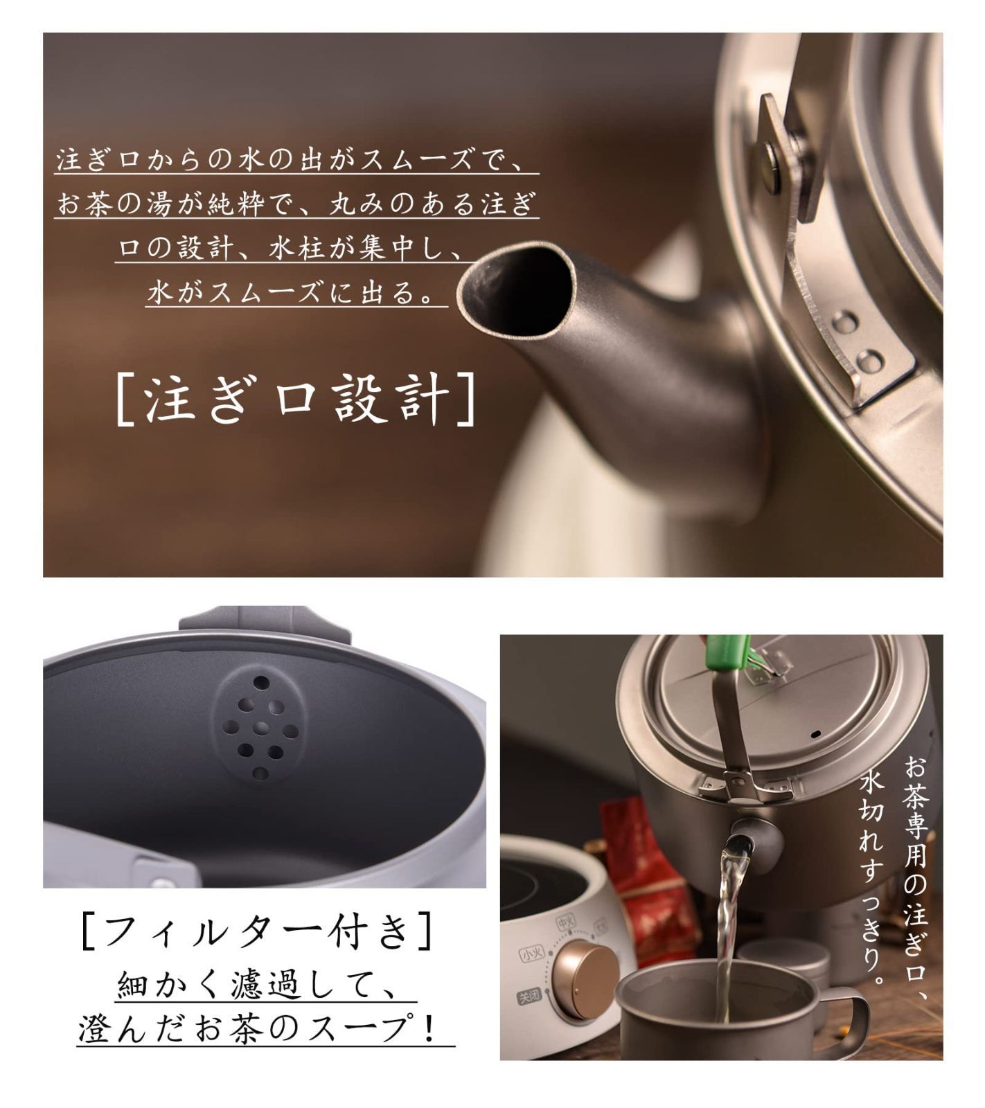 【超軽量で丈夫】この急須は上質な99.8%純チタンで作られ、軽量、酸、アルカリ、耐腐食性、錆びにくい、頑丈な構造と熱伝導に優れています。 チタンは他の物質と一切の化学反応を起こさないので、本来の味を保ちます。