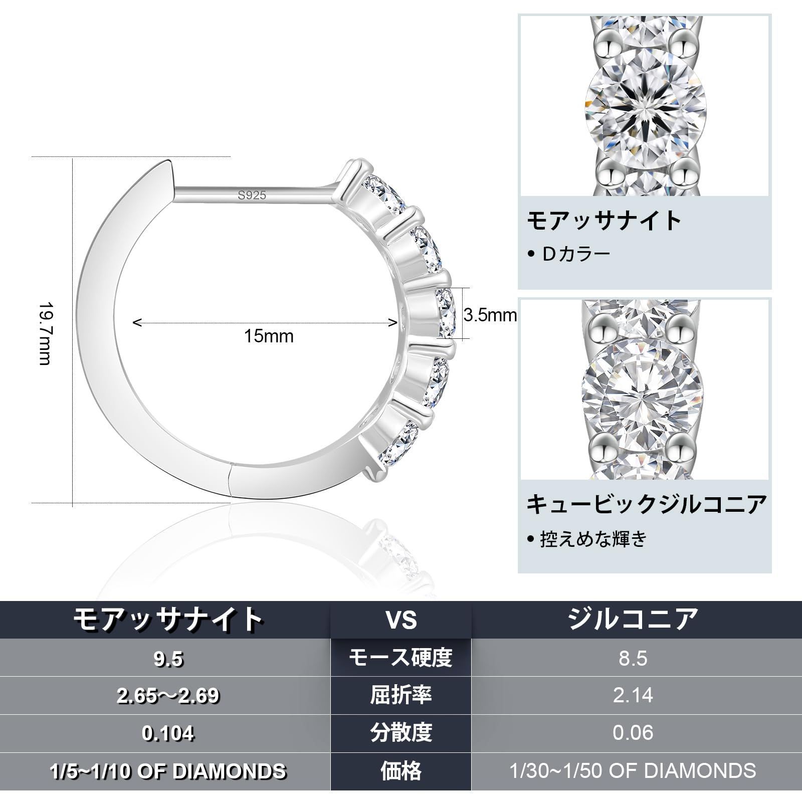 KRKC&CO モアッサナイト フープピアス レディースピアス シルバー925 内径11/13/14/15mm 金属アレルギー対応 両耳 計0.6/1.0/1.4/2.0ct 人工ダイヤモンド 20G ハーフエタニティ リングぴあす シンプル キラキラ