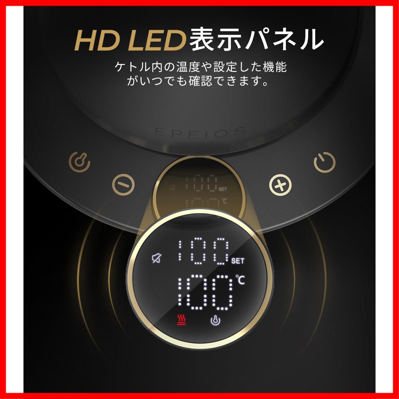 電気ポット LED表示パネル 細口ドリップ ドリップ ポット コーヒーポット 1° C単位の精密調節 コンパクト0 9 L コーヒー 電気ケトル 1040 W エペイオス Epeios