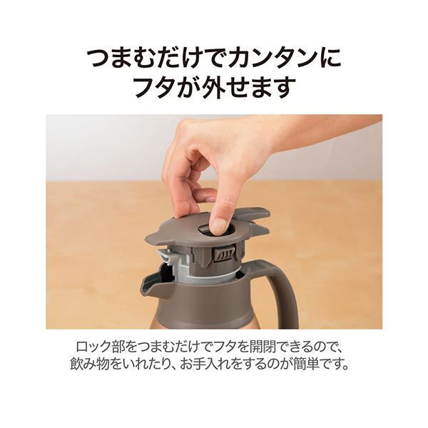 ●「ラクラク開閉フタ」ロック部をつまむだけでフタを開閉できるので、飲み物をいれたり、お手入れをするのが簡単です。